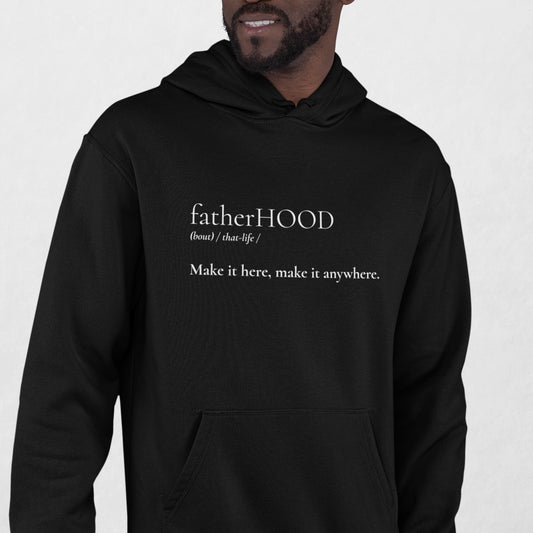 Graphic Premium Comfort Dad’s Hoodie - Minimalist “FatherHOOD”design by Holy Savage