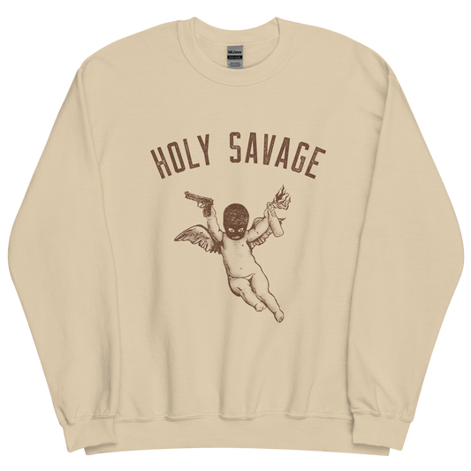 Comfy Crewneck Graphic Sweatshirt - Fall Brown “Holy Savage”