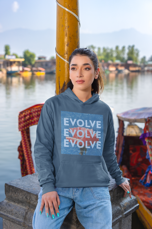Graphic Premium Comfort Hoodie - Conscious “Evolve” Blue/Rose Design by Holy Savage