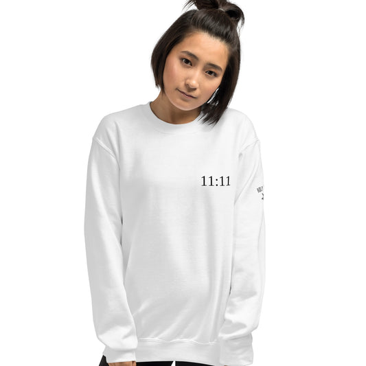 “11:11” Angel Numbers - Minimalist Black Design - Comfy Crewneck Sweatshirt by Holy Savage