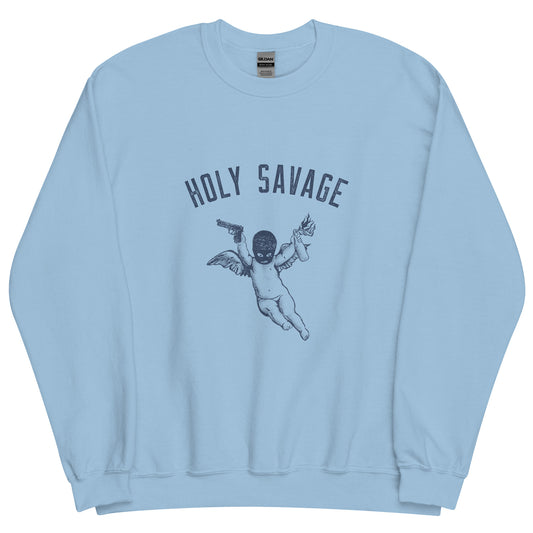 Premium Crew Neck Sweatshirt - Deep Blue Holy Savage Logo