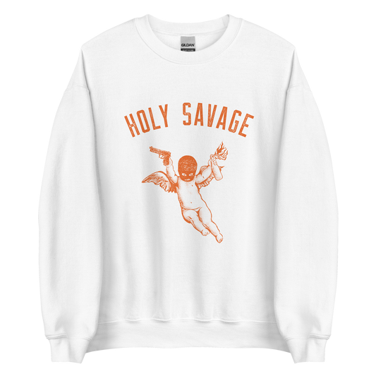 Comfy Crewneck Graphic Sweatshirt - Fall Brown “Holy Savage”