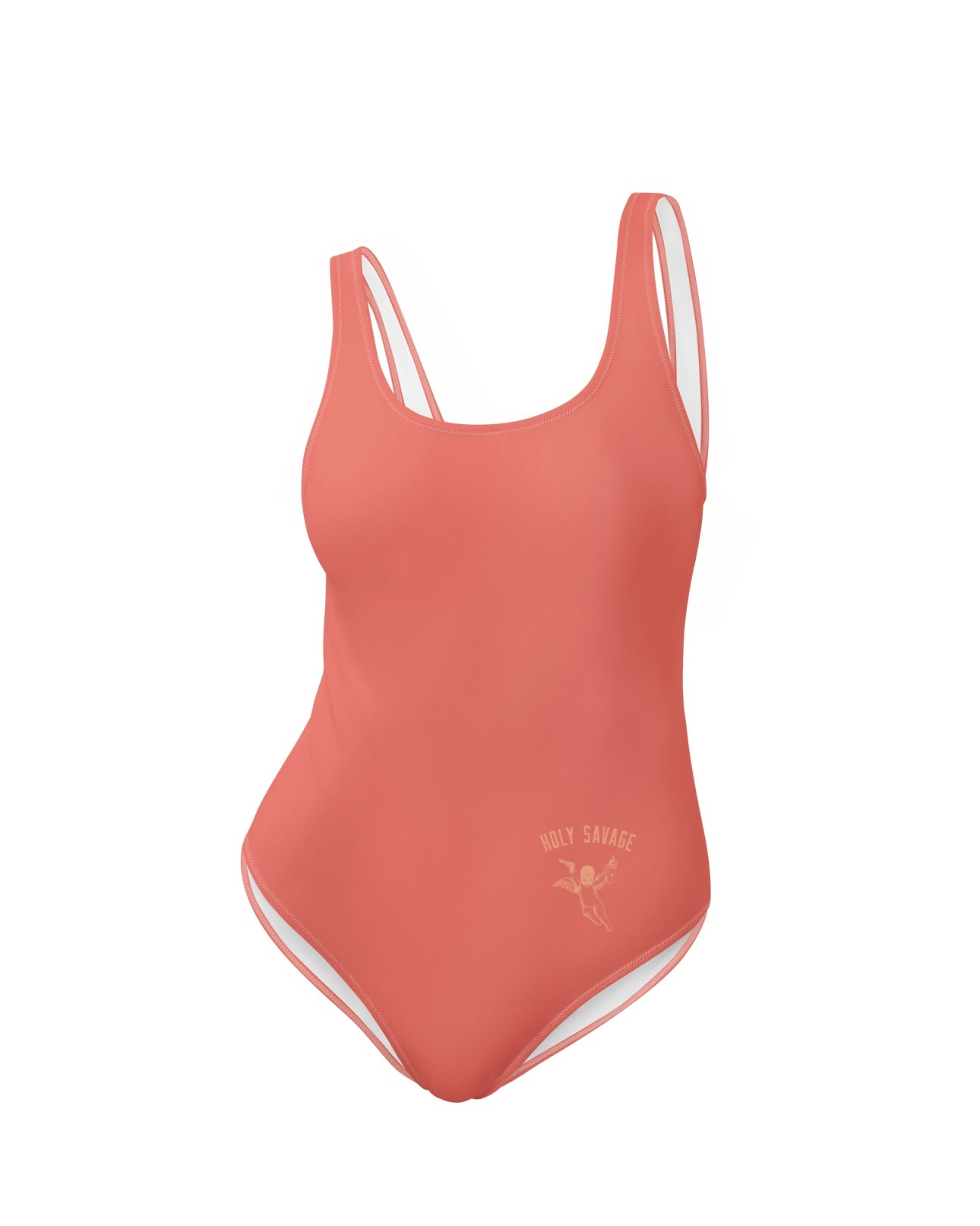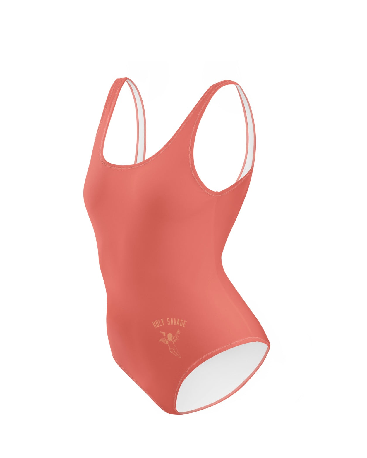 Classic One-Piece Swimsuit "Coral Reef" Bright Coral - Low Back Cheeky Fit by Holy Savage
