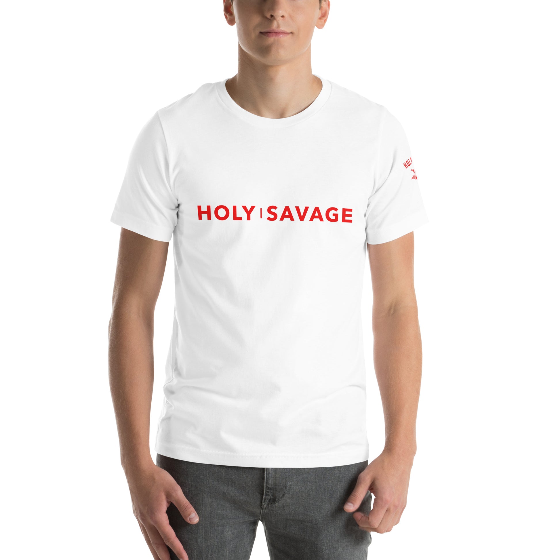 Who doesn’t love a comfy T-Shirt? Complement an everyday laid-back look with a pop of color in our minimalist red “Holy Savage” design. A lightweight quality cotton tee with a flattering and universal fit for a good look and feel for all!
