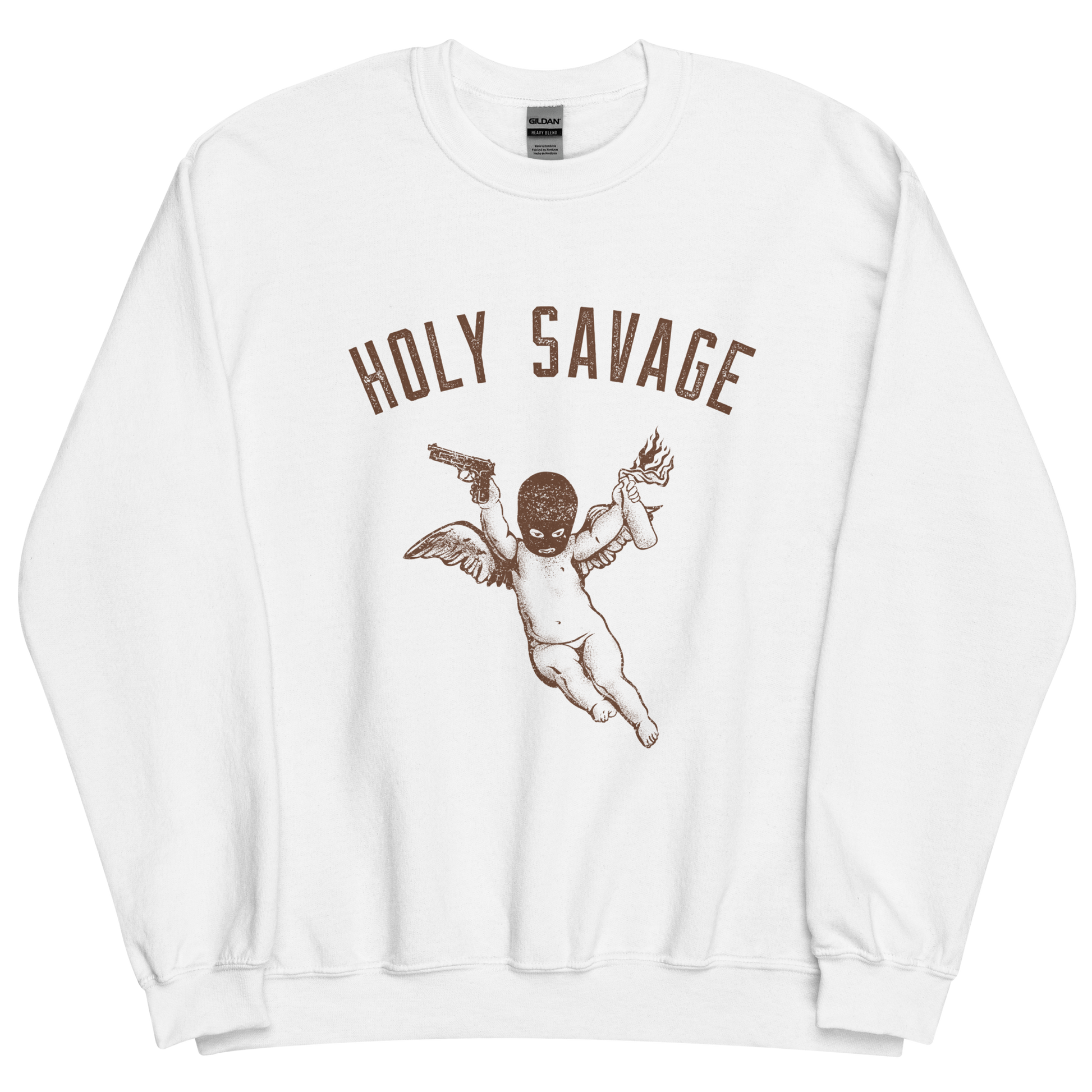 Comfy Crewneck Graphic Sweatshirt - Fall Brown “Holy Savage”