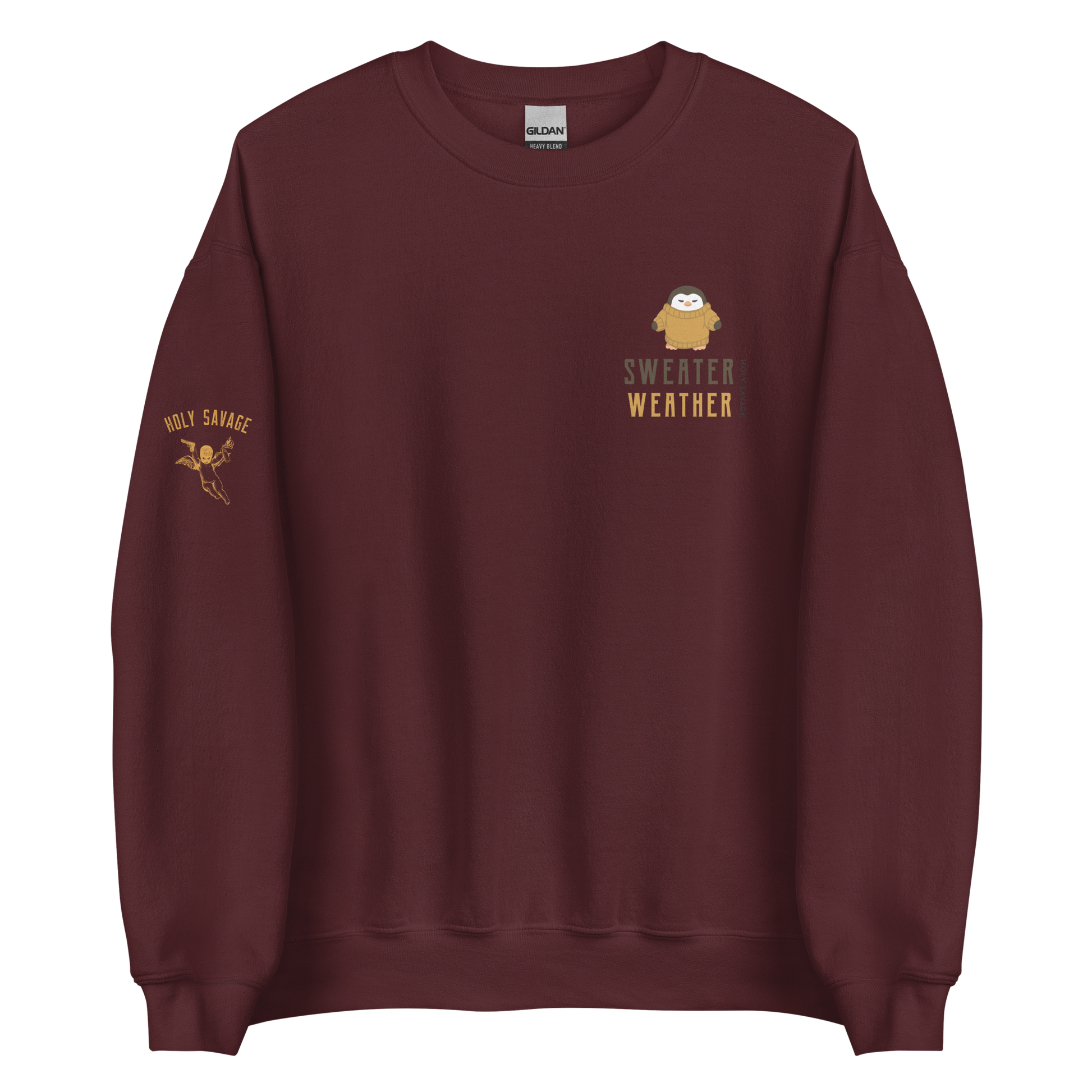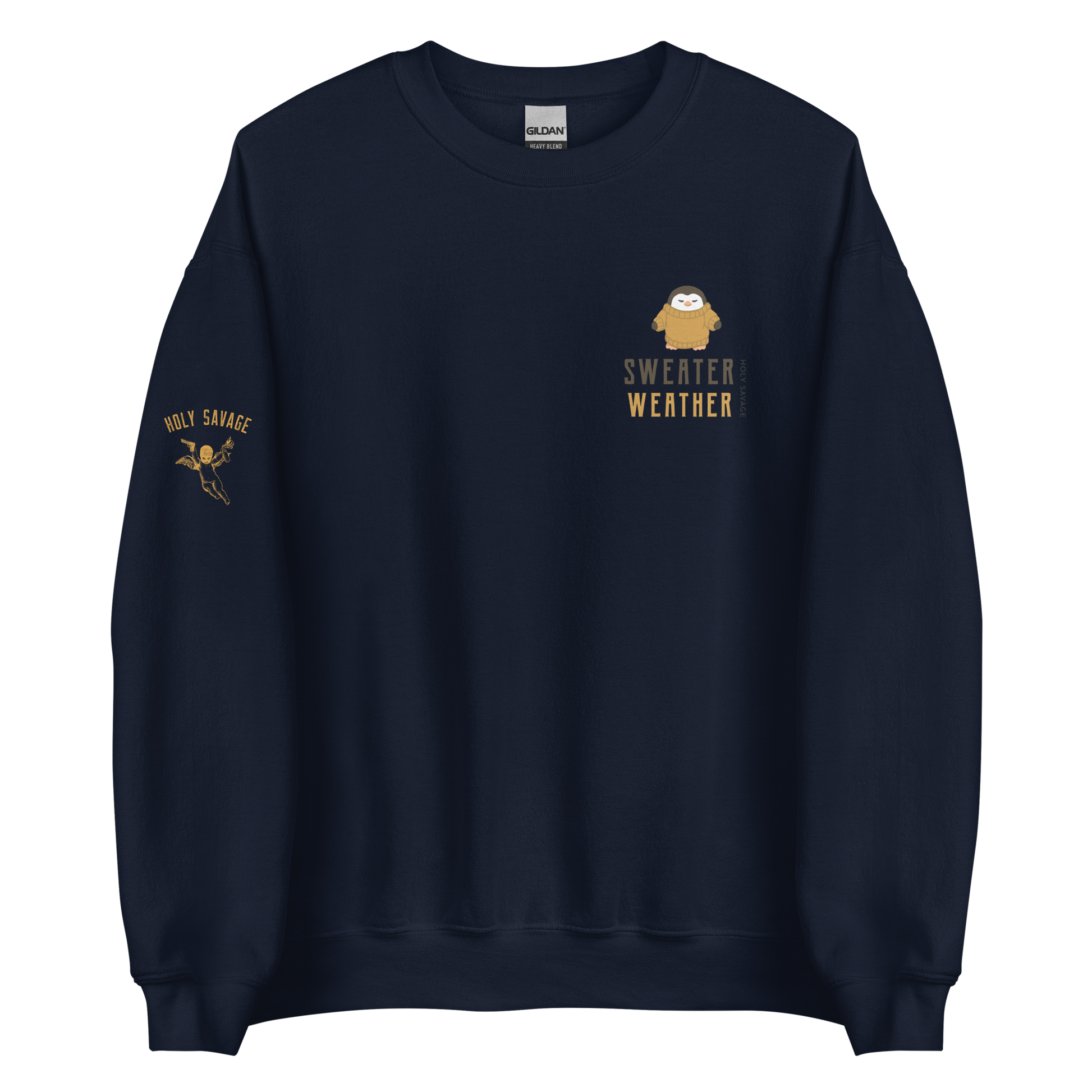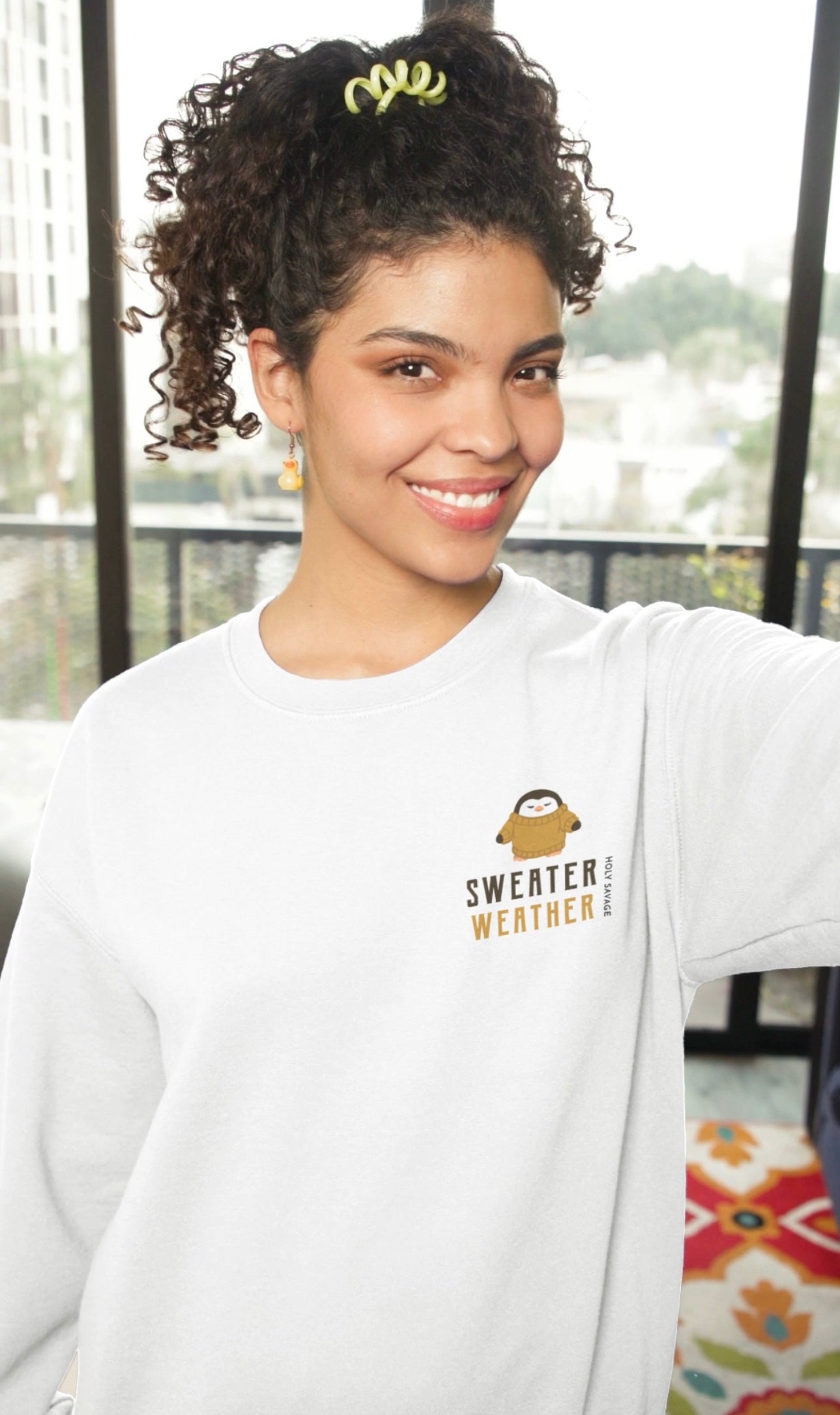 Cozy Crewneck Sweatshirt - “Sweater Weather” Penguin in Tan Design by Holy Savage