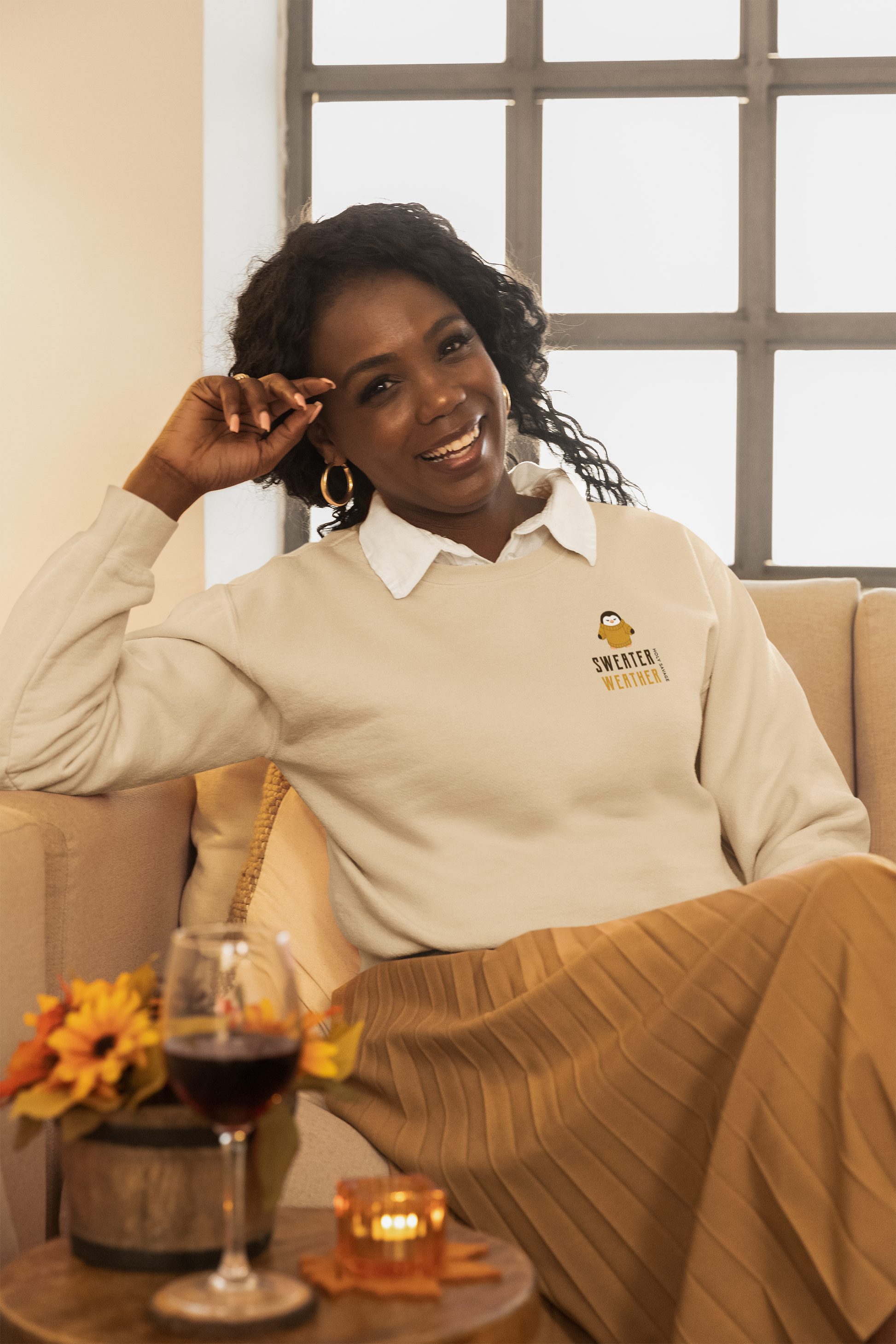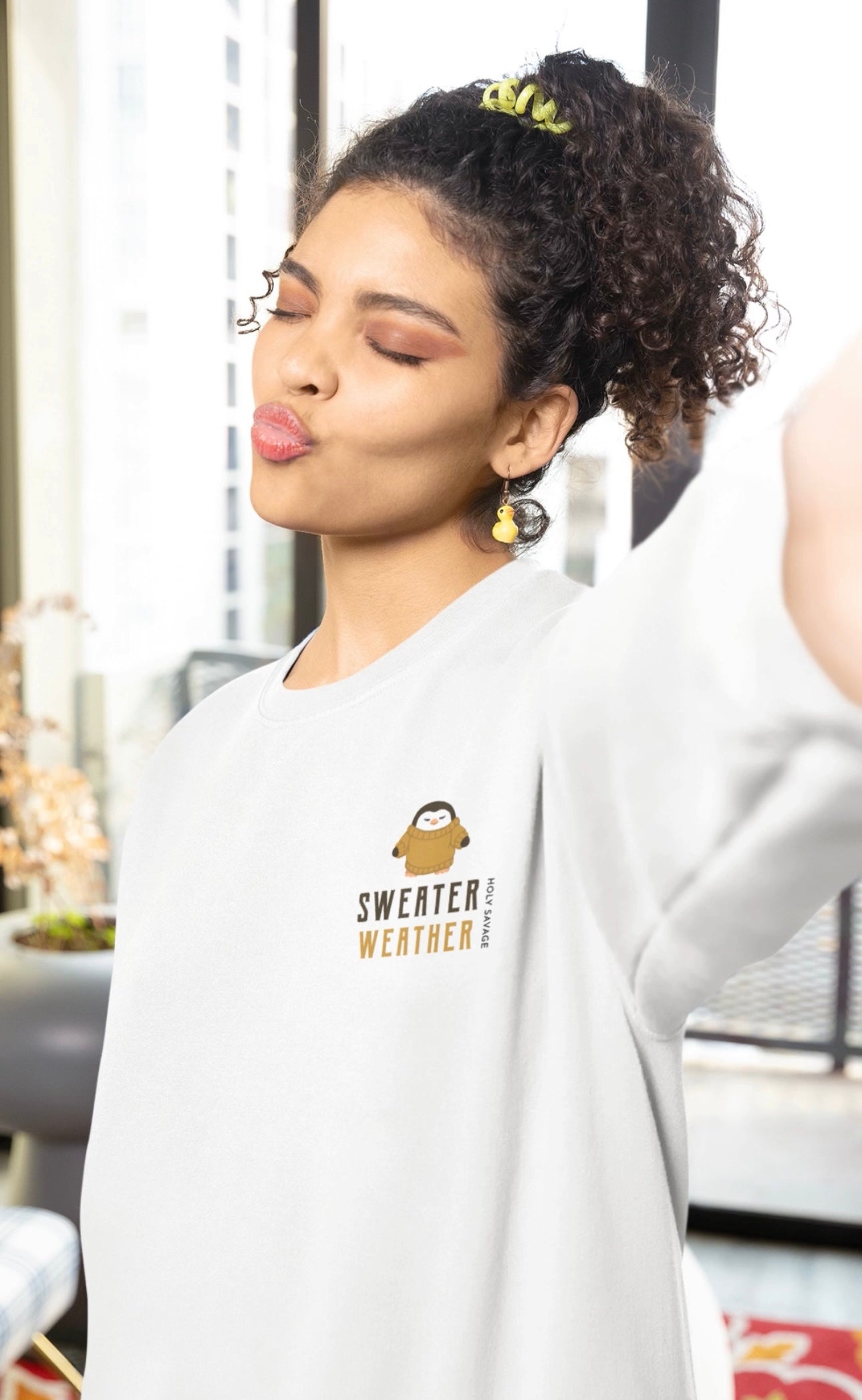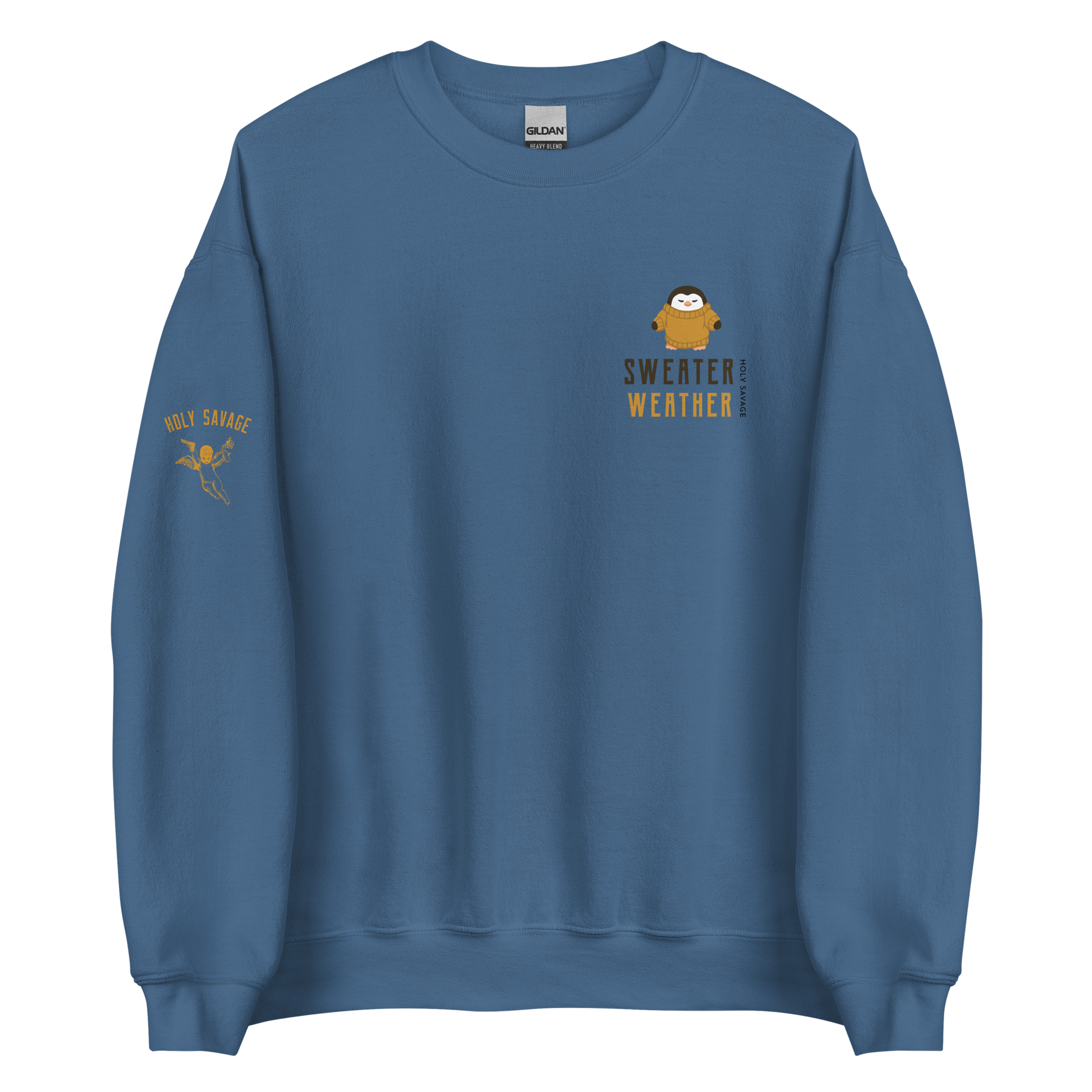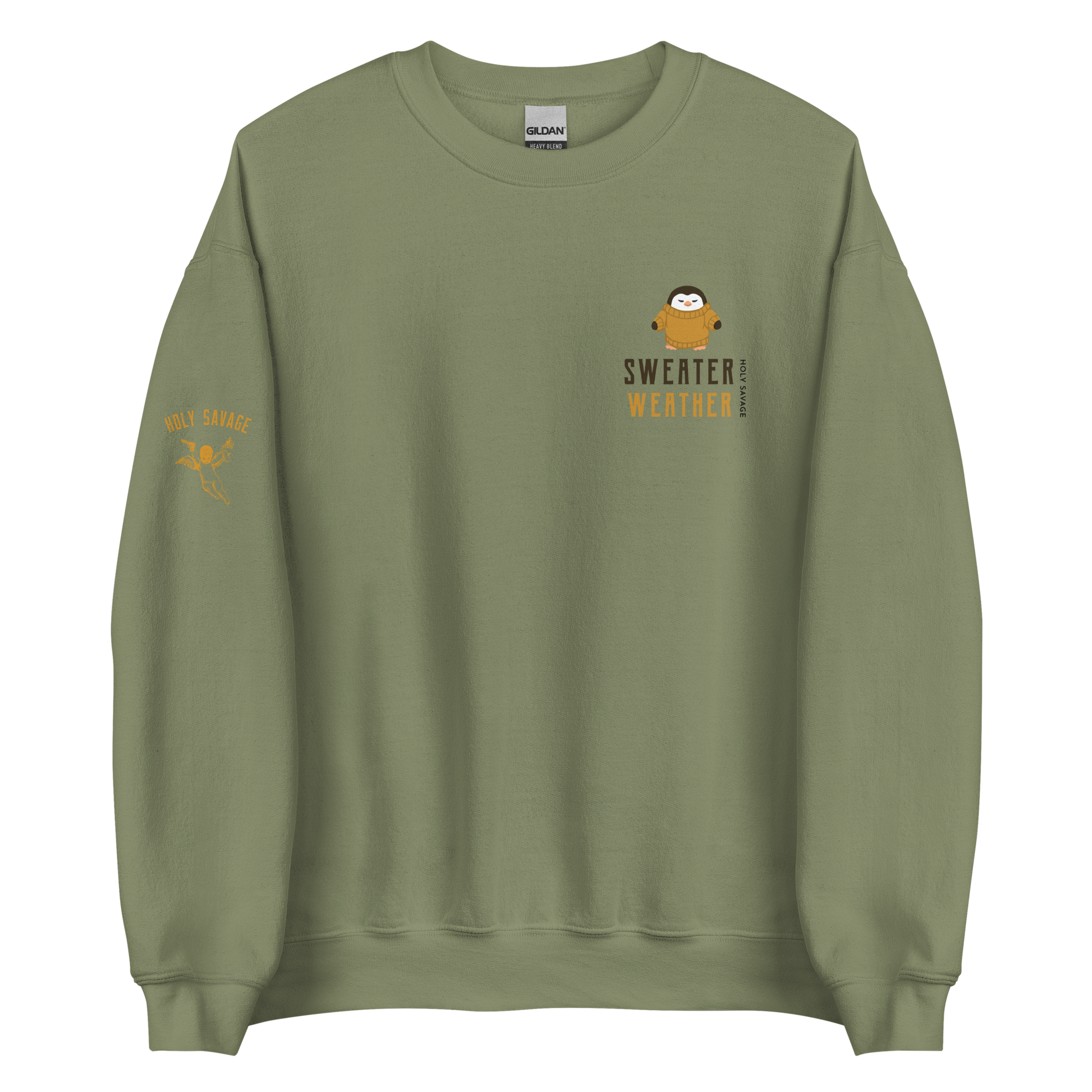 Cozy Crewneck Sweatshirt - “Sweater Weather” Penguin in Tan Design by Holy Savage