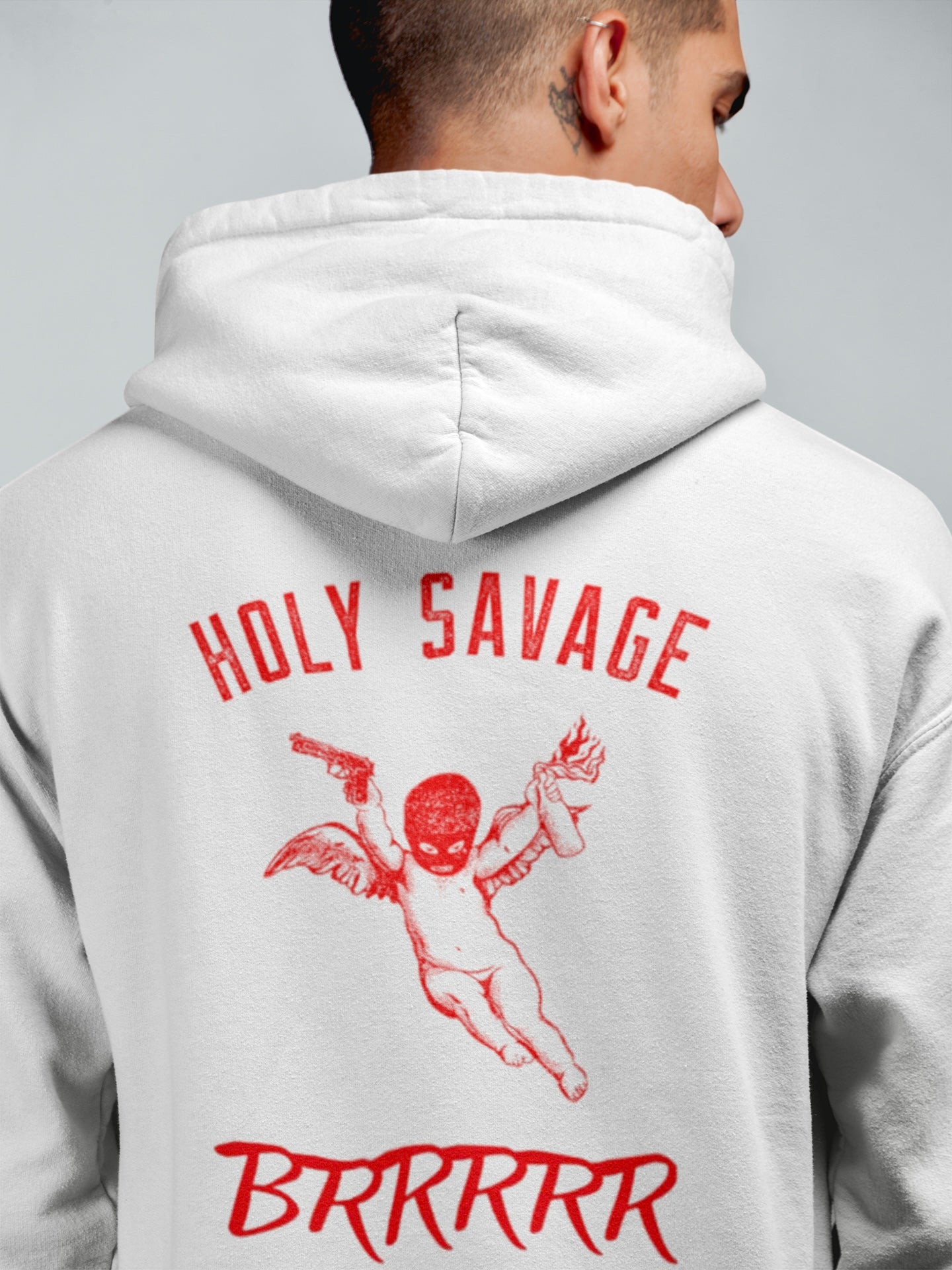 Hoodie season is always! Anuel AA inspired for our holy savages! Even the placement is meant to give you room to bring out the big dog chains if you want! Brrrr! The feel is soft, thick, cozy and our go-to style of hoodie!