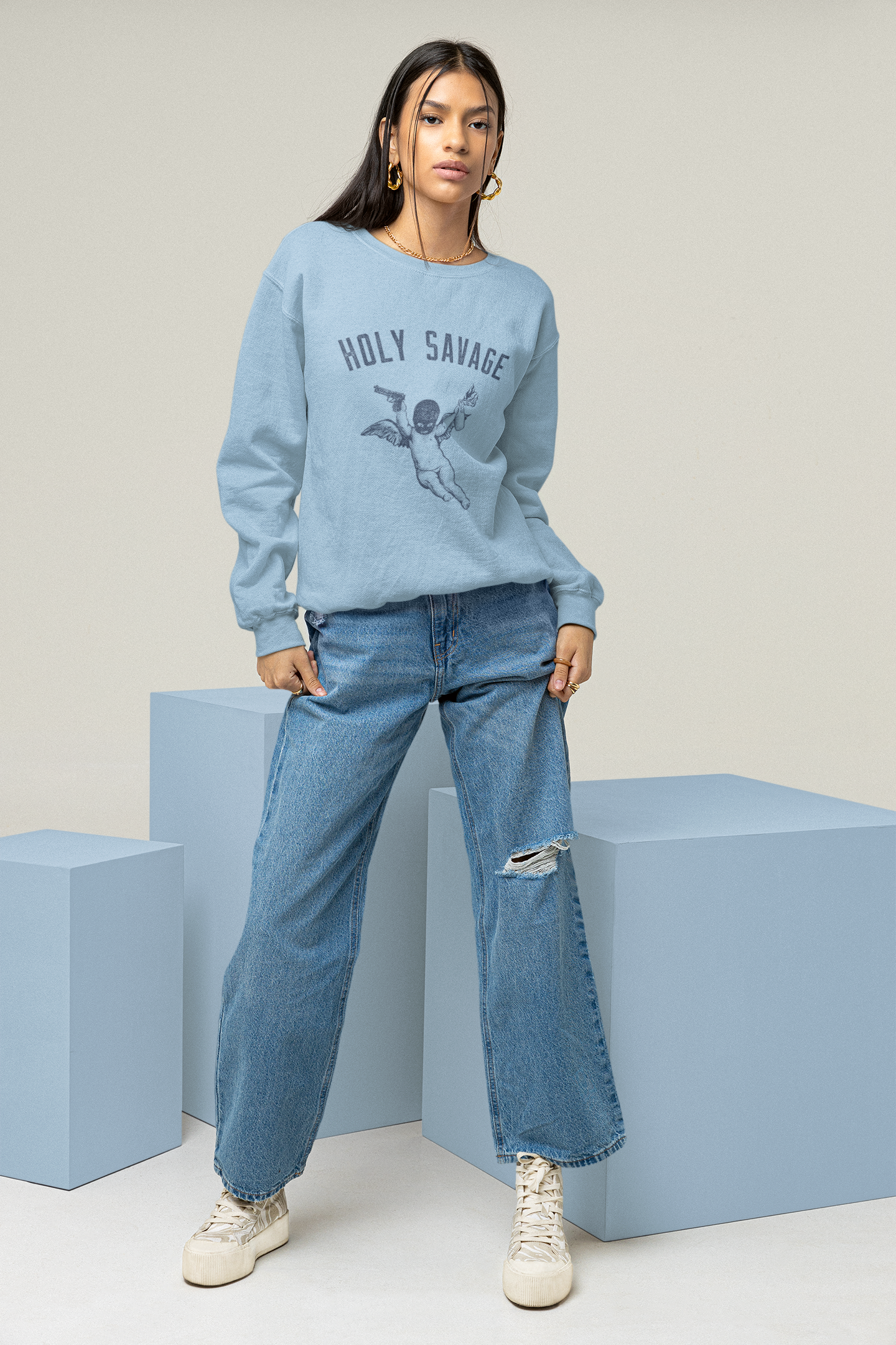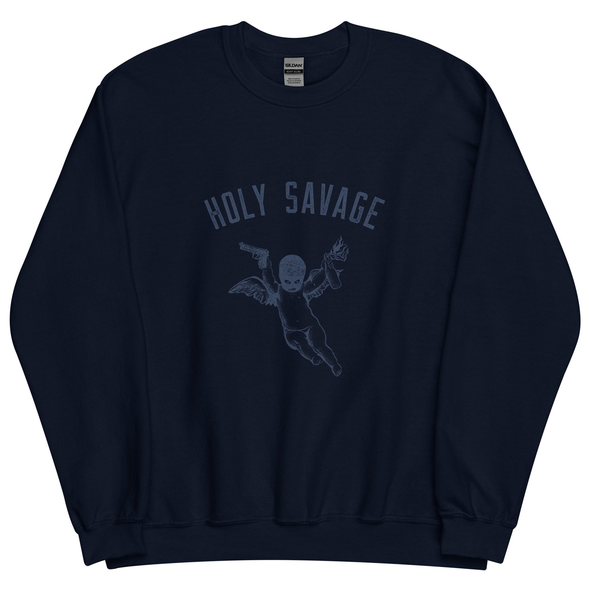 Premium Crew Neck Sweatshirt - Deep Blue Holy Savage Logo