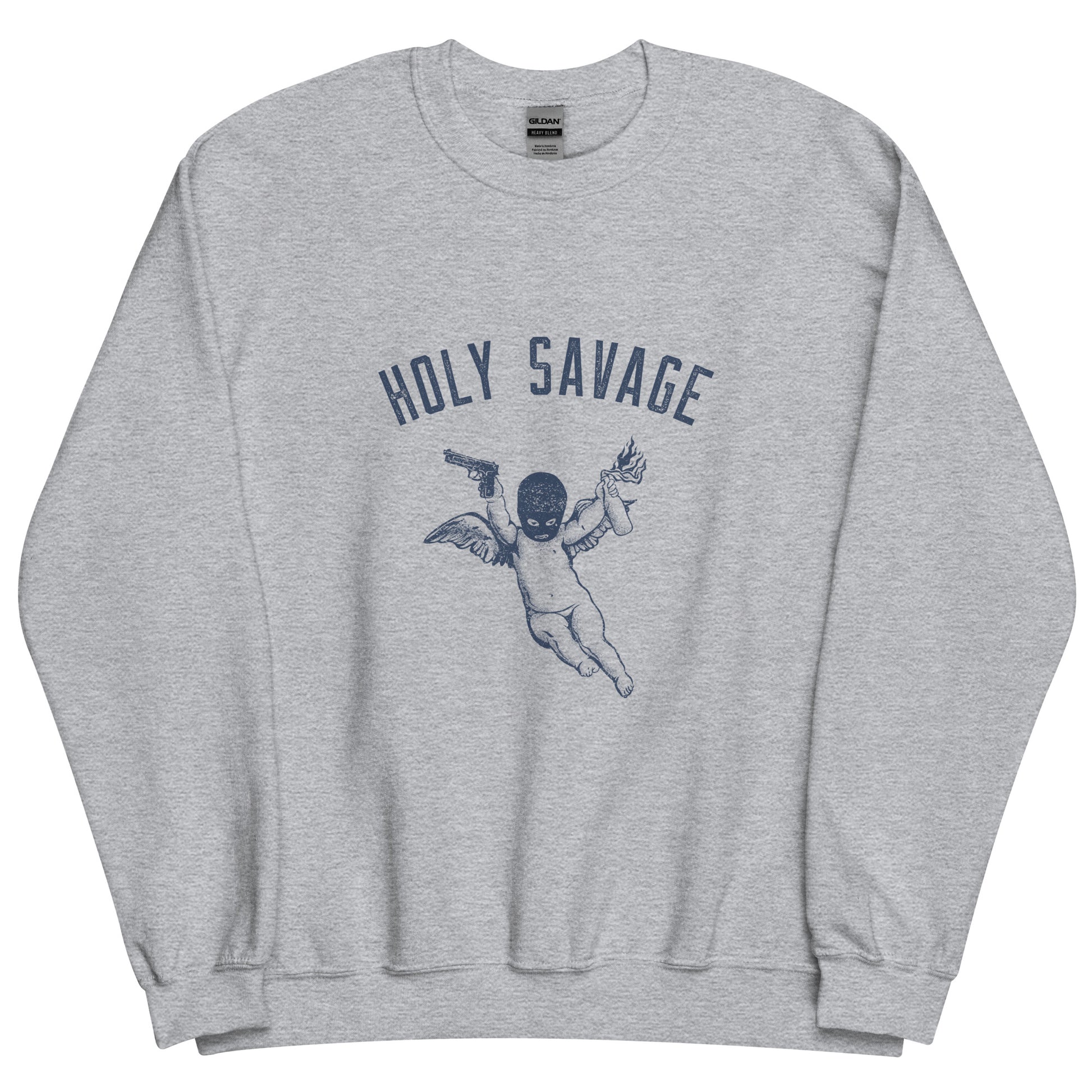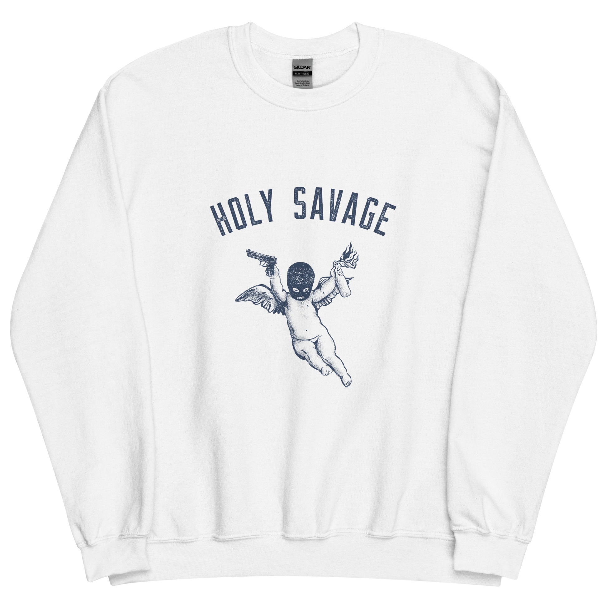 Holy Savage sweatshirt is sturdy, warm, and bound to keep you warm in the colder months. A pre-shrunk, classic fit sweater that's made with air-jet spun yarn for a soft feel and reduced pilling.