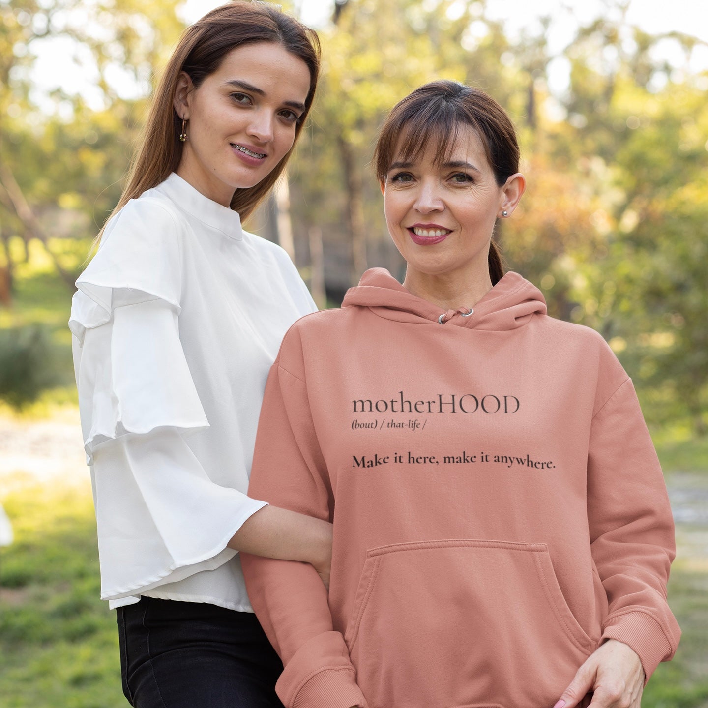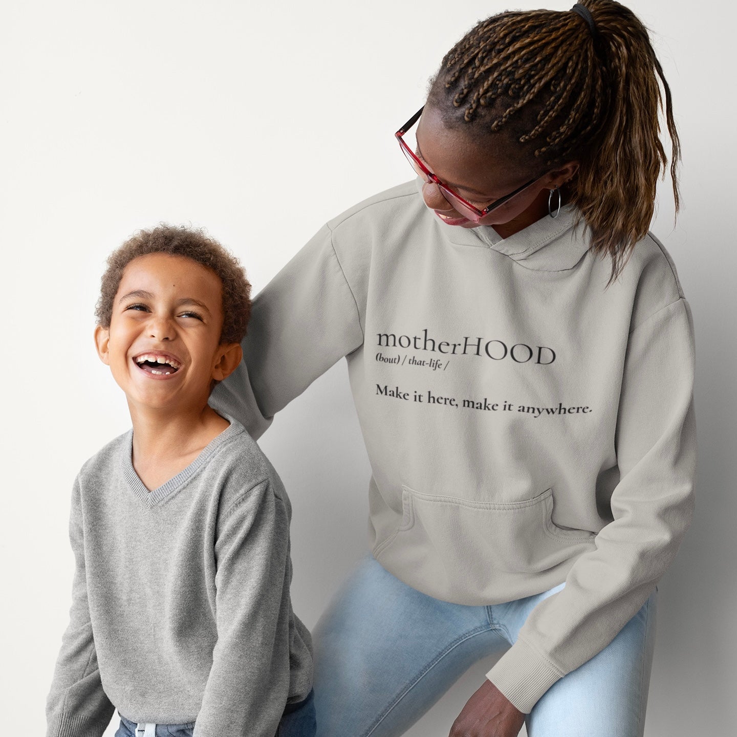 Motherhood life! You won't regret buying this comfy classic streetwear piece with a convenient pouch pocket and warm hood for chilly evenings.
