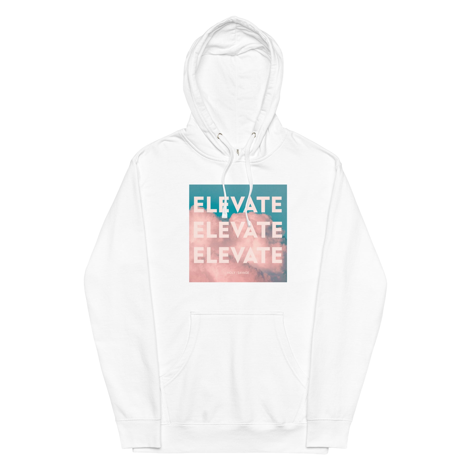 Graphic Premium Comfort Hoodie - Conscious “Elevate” Sky Pink Design by Holy Savage